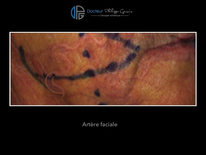 En effet, il existe un glissement vers le bas de la loge graisseuse superficielle qui se trouve bloquée entre deux points fixes que sont le ligament mandibulaire et l’artère faciale.