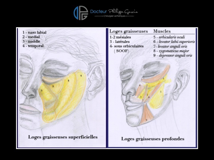 Il est très important de bien connaître la répartition et les variations de volume des loges graisseuses superficielles et profondes, qui sont séparées par des cloisons.